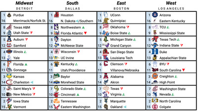 — Purdue’s stranglehold on the number one overall seed has dwindled to a minor gap between them, Houston, and UConn following their loss at Ohio State. UConn has also narrowed the gap between them and Houston following their 28 point win over Marquette at home.