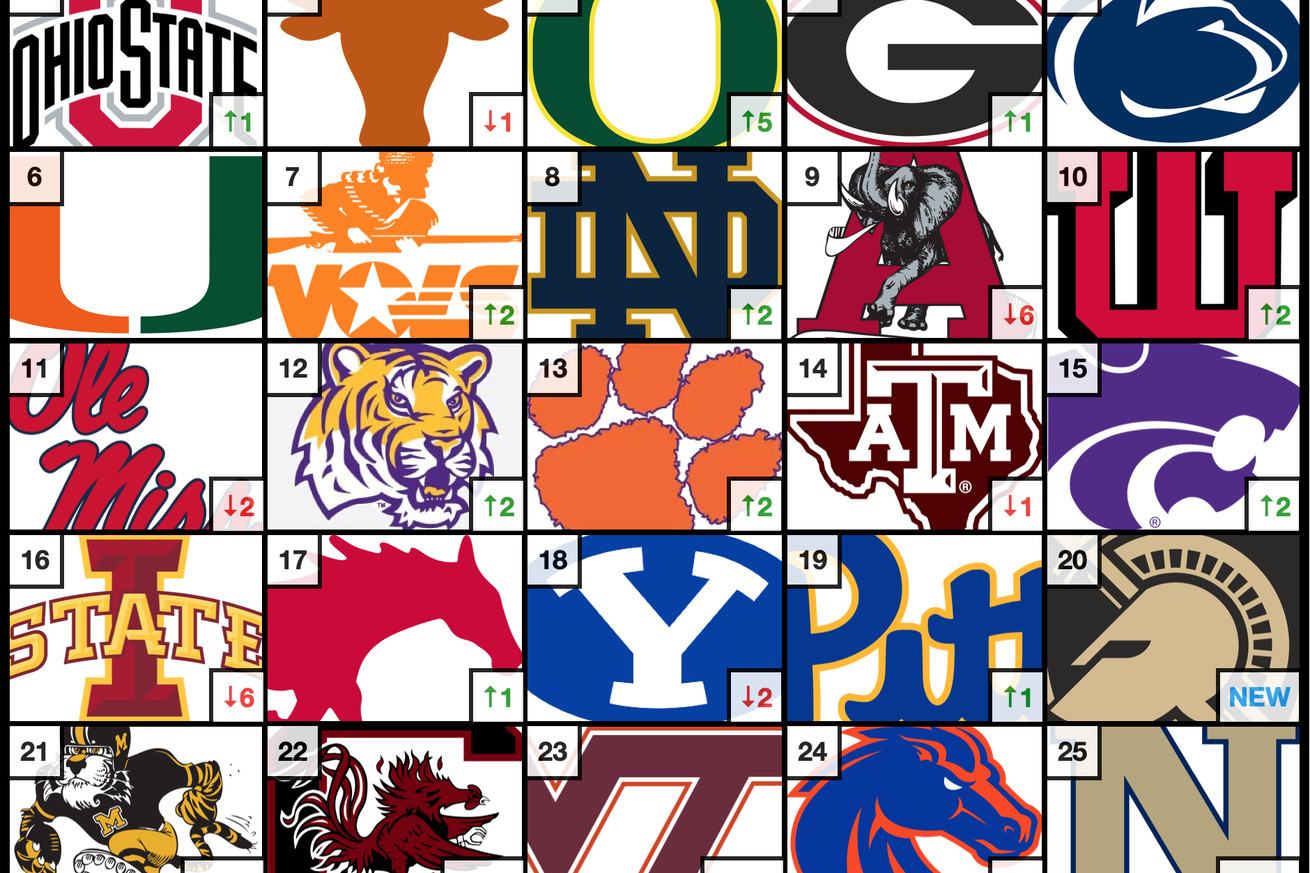 Since we last saw Oregon on the list, they sat at eight. Since then, they rattled off a one-point win against Ohio State in Eugene and shut out Purdue on the road. With a home game against Illinois (28) up next followed by a date in the Big House the week after, this is a Ducks team that has potential to crack the top two.