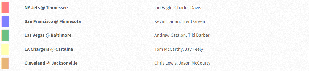 Getting the call for this game will be Ian Eagles (play-by-play), Charles Davis (analyst), and Evan Washburn (sideline).